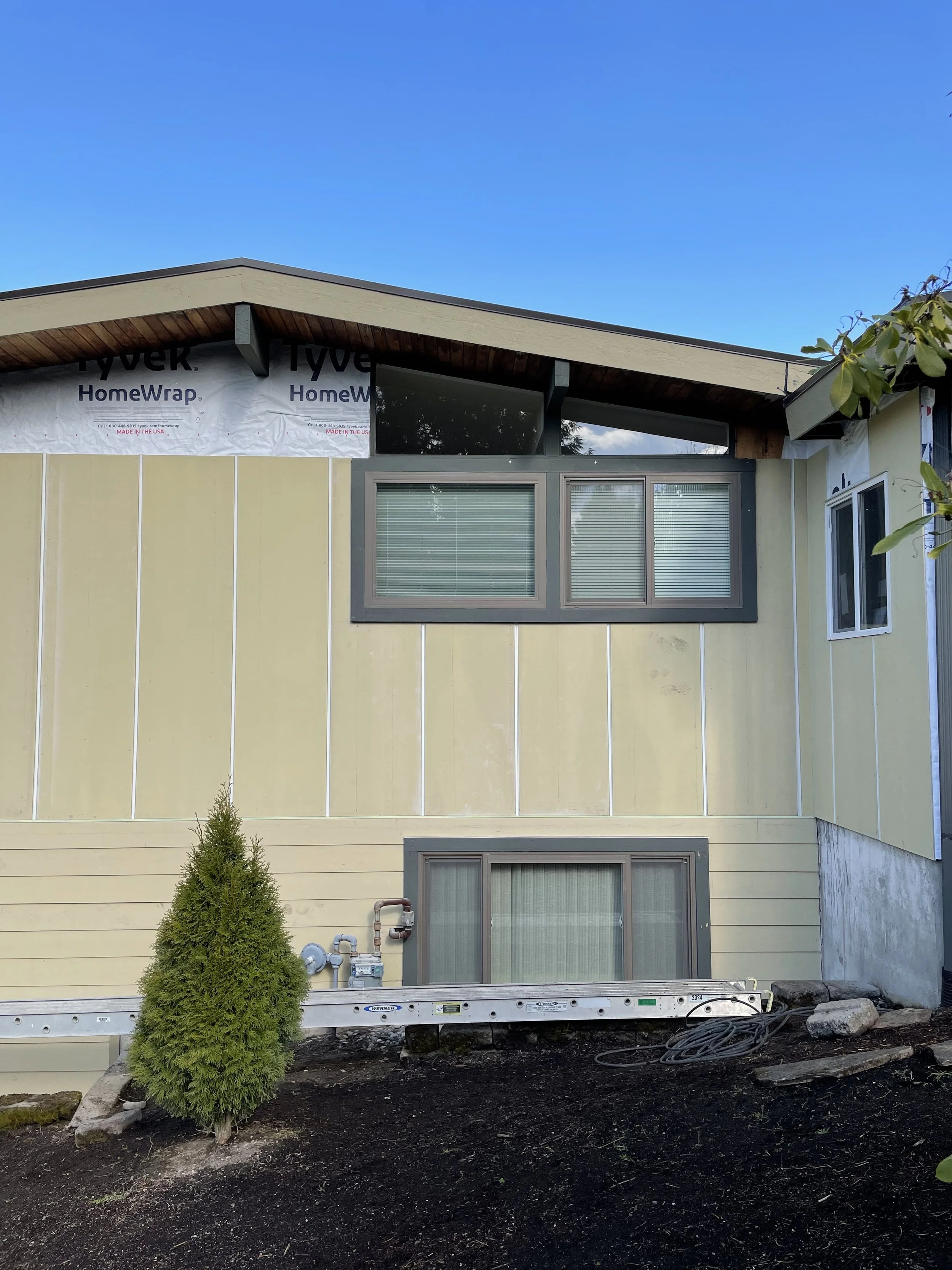 Mid-Century Modern RefreshExterior cladding and paint refresh for mid-century modern residence in Bellevue, Washington.